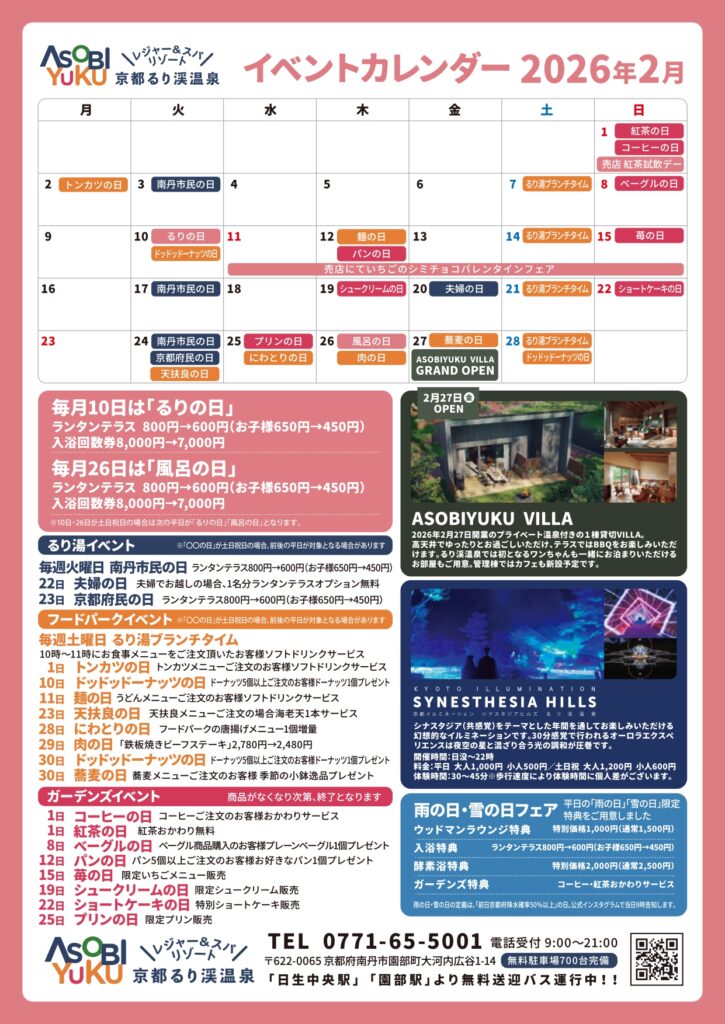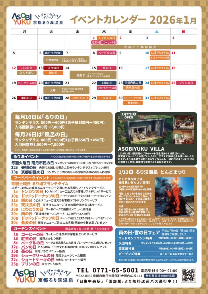 1月、2月のイベントカレンダーです