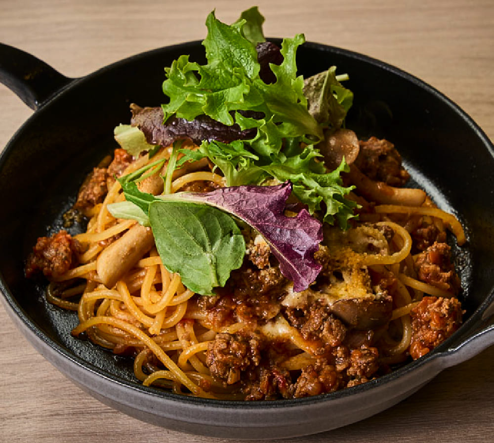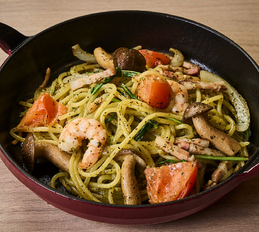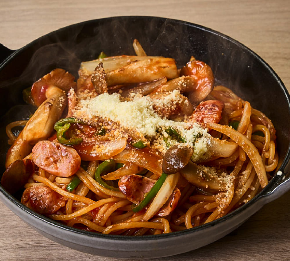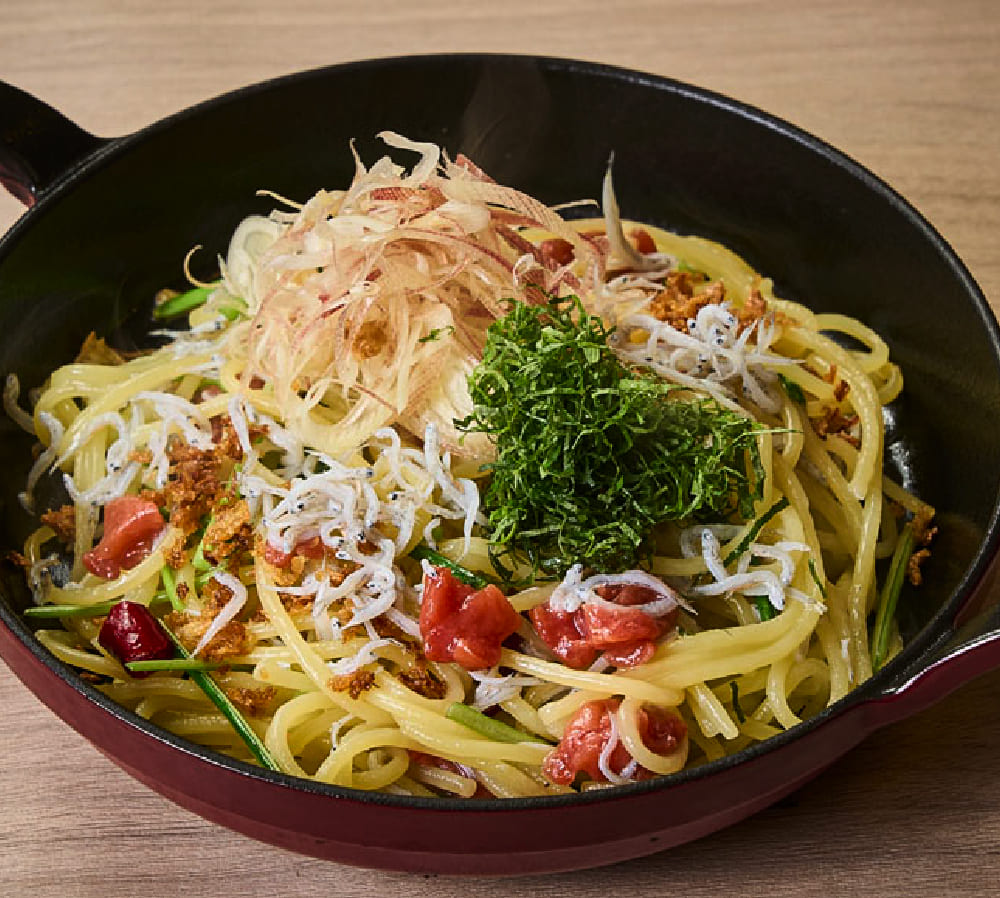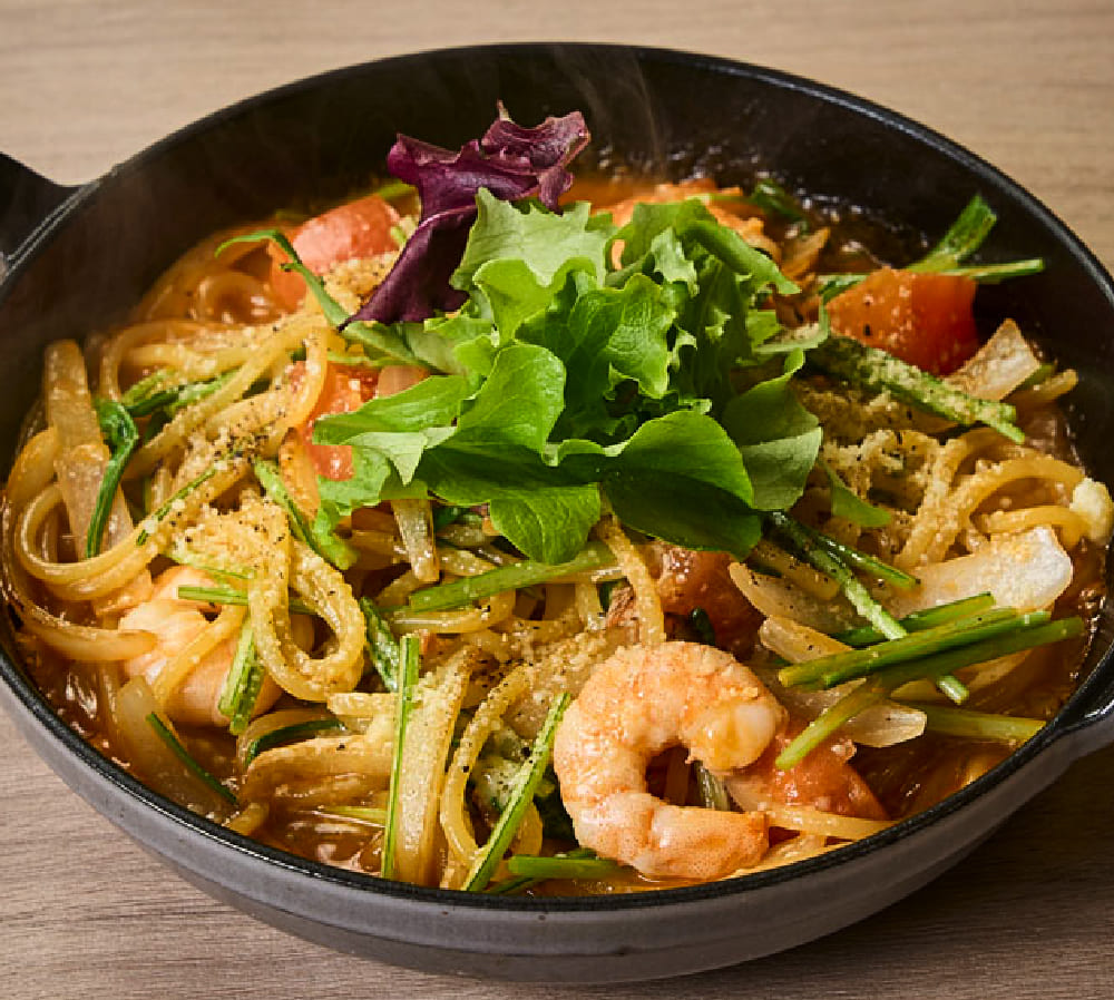 生パスタを最後にジュっと焼き上げることで、香ばしさとコク、
